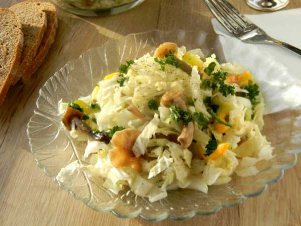 Не удивляйтесь внешнему виду моей пекинской капусты. Просто от кочана осталась небольшая центральная часть, поскольку я для приготовления не режу весь кочан пекинки, а отделяю от него необходимое количество листов. А чтобы цвет пекинской капусты вновь стал ярко-зеленым после того, как она скучала в холодильнике, советую поставить кочан пекинки в емкость с водой и оставить на подоконнике на пару дней. Листочки пекинской капусты на свету вновь станут жизнерадостными. Чем дольше стоит, тем темнее будет цвет.