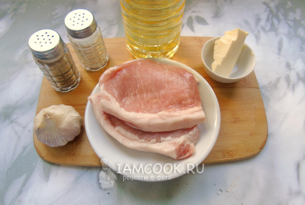 Соберите ингредиенты для приготовления бифштекса из свинины. Чтобы бифштекс получился нежным и сочным, возьмите свиную шею или корейку, карбонад.
