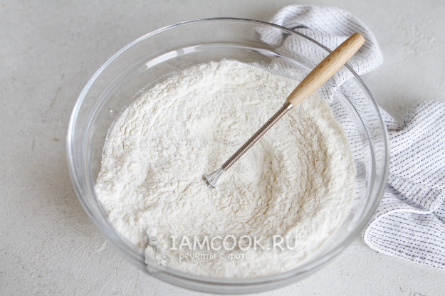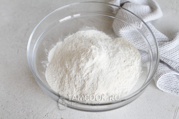 Подготовьте глубокую чашу для замеса. Просейте муку. В рецепте указаны пропорции, которые проверены мною не один раз, поэтому я сразу добавляю всю муку в чашу. Если вы замешиваете тесто первый раз, рекомендую муку добавлять частями.