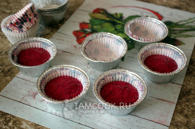 Разложите тесто по смазанным или проложенных бумажными капсулами формочкам примерно на 2/3 их высоты.