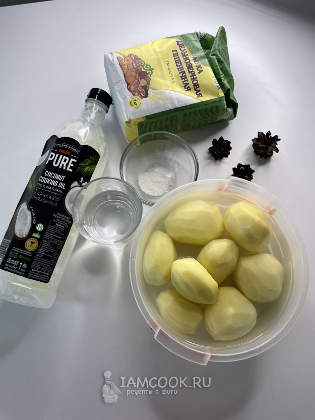 Для приготовления ПП пирожков с картошкой в духовке соберём все необходимые ингредиенты по списку.