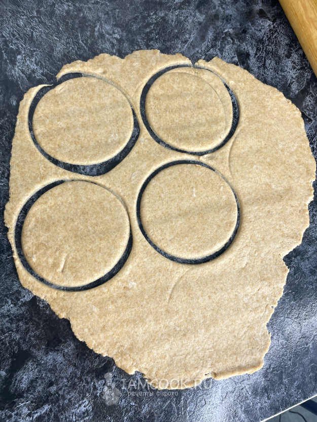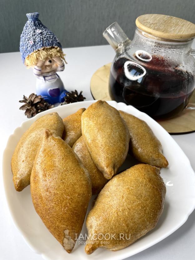 Тесто раскатываем толщиной примерно в 2-3 мм. Вырезаем кружочки и кладем начинку. Защепляем края. По желанию можно смазать пирожки яйцом для румяности.