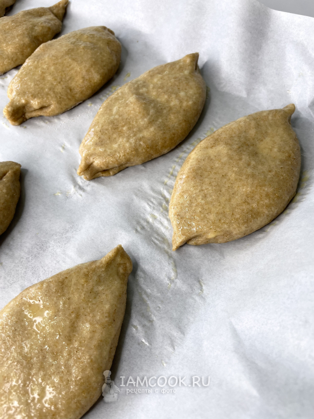 Застилаем противень пергаментом и перекладываем на него пирожки. Выпекать ПП пирожки с картошкой в заранее разогретой духовке 30 минут при 180°С.