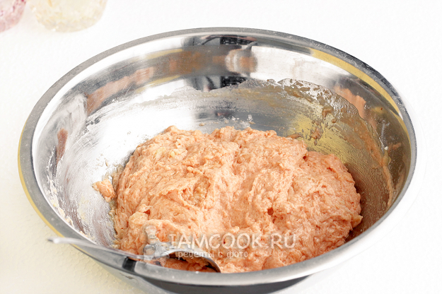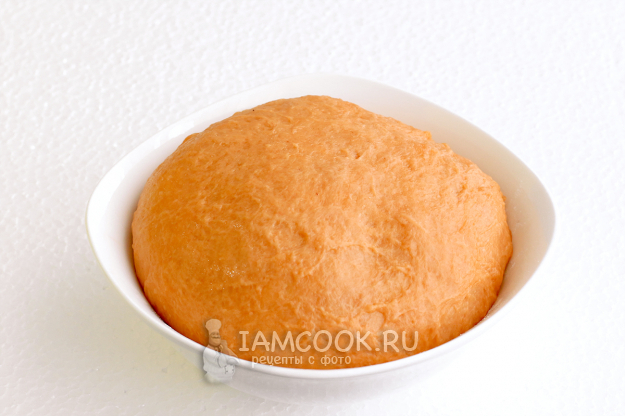 Вывалите тесто на стол и вымесите до гладкости. Тесто получается жирноватым, но при выпечке этого вы не почувствуете. Накройте комок теста пленкой и уберите в холодильник, пока будете готовить начинку.