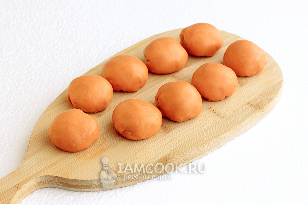 Достаньте тесто из холодильника и поделите на 18-20 шариков. Подкатайте каждый шарик до гладкости. Размер - побольше грецкого ореха.