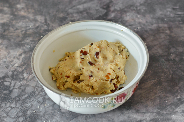 Достаньте тесто из холодильника. Отщипывайте от него небольшие кусочки и скатывайте их в шарики, а шарики слегка расплющивайте между ладоней.