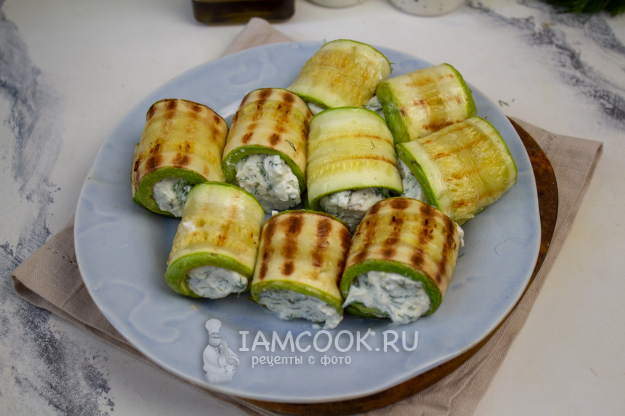 Наши рулетики из кабачков с творожной начинкой готовы!