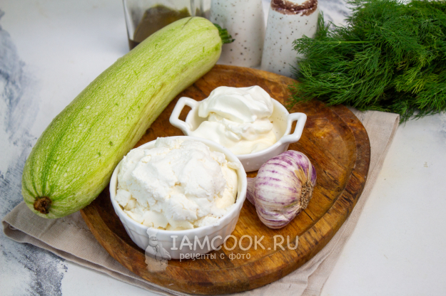 Соберите все необходимые продукты для приготовления рулетиков из кабачков с творожным сыром. А всего-то нам понадобятся кабачок, сыр и зелень. Кабачок желательно выберите молоденький, длинный, с тонкой шкуркой и минимальным количеством семян. Творожной сыр возьмите тот, который любите.