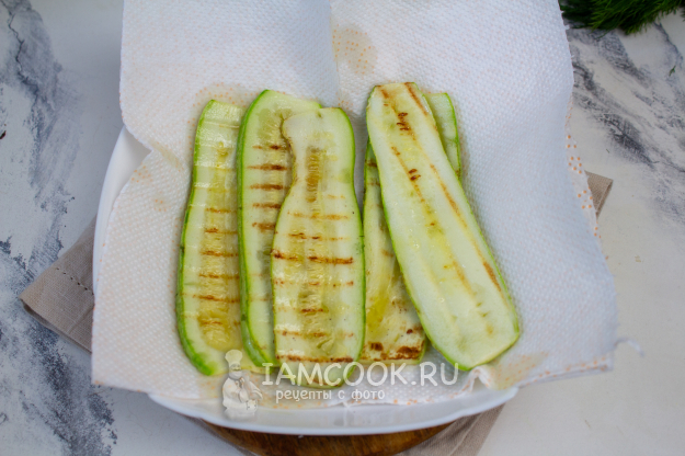 Обжаренные кабачки переложите на бумажное полотенце для удаления лишнего масла.