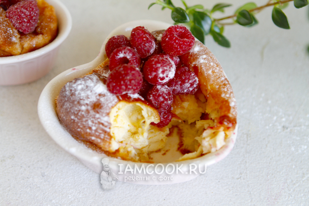 Достаньте запеканку из холодильника и украсьте ее ягодами. В моем случае это малина.