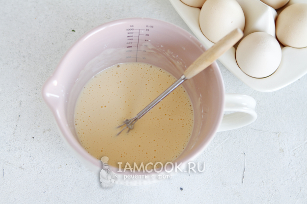 Тщательно взбейте все ингредиенты. Тесто должно быть гладким, без комочков.