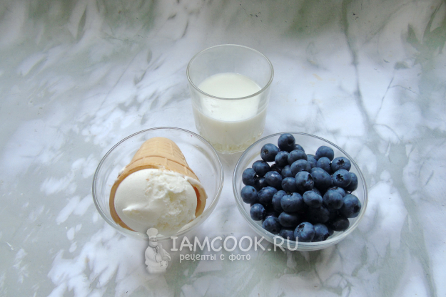 Соберите ингредиенты для приготовления молочного коктейля с голубикой.
