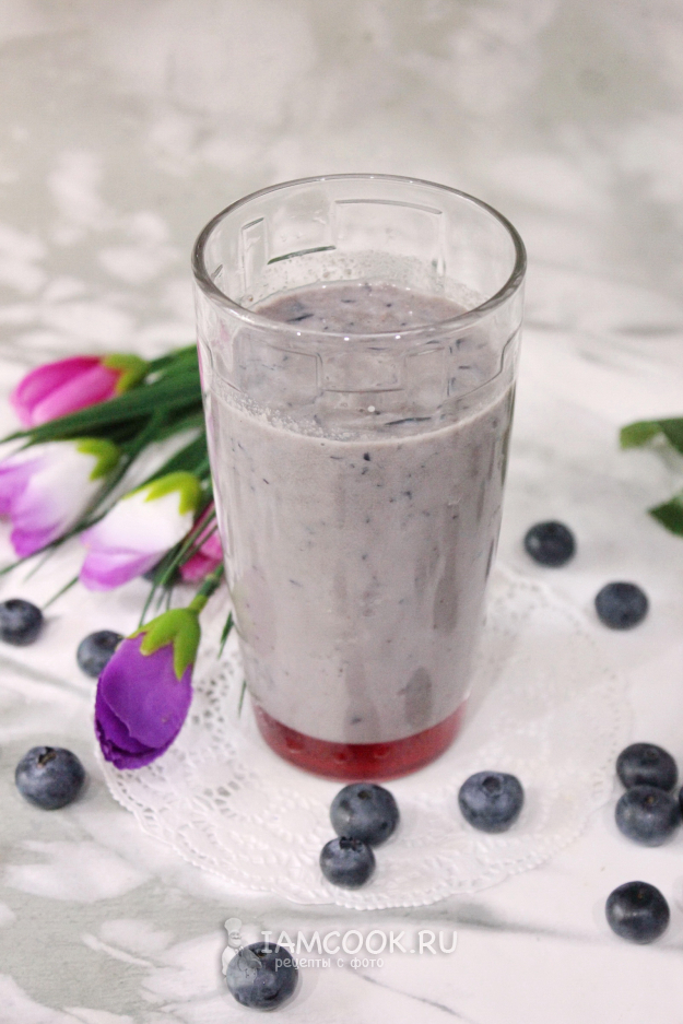 Взбейте голубику с мороженым и молоком. Если смесь будет очень густой, разбавьте коктейль молоком по вкусу.