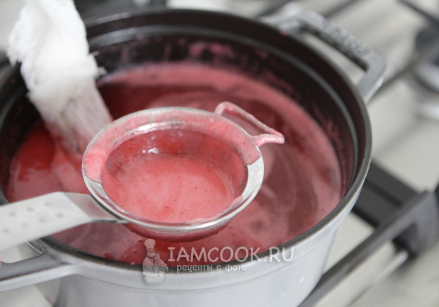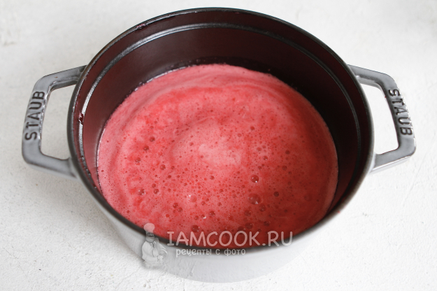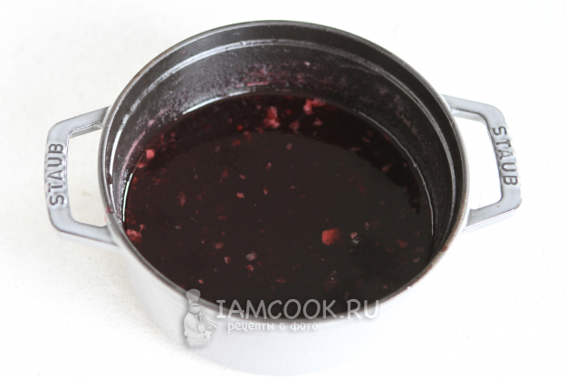 Отправьте на плиту. Содержимое доводим до кипения. Аккуратно снимаем всю пенку. Кипятим 1,5-2 часа, регулярно помешивая, на самом медленном огне. Во время кипячения мешочек со специями должен оставаться в кастрюле. За это время специи полностью отдадут свои ароматы.