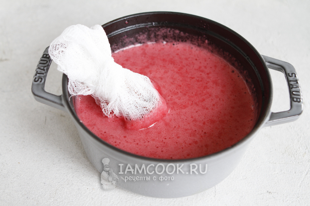Затем полученную смесь нужно будет перетереть через сито. Это самый трудоемкий процесс, но пропускать его не советую. На выходе у меня получилось 530 мл сока. Жмых от смородины выбрасываем, он нам не пригодится.