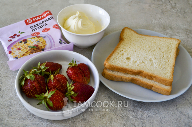 Соберите продукты для приготовления корейского сэндвича с клубникой. Ягоды вымойте, обсушите.