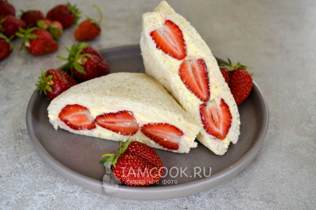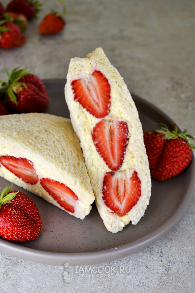 Подавайте корейский сэндвич с клубникой и сливками к столу.