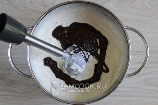 Затем вмешайте не горячий, а тёплый расплавленный шоколад.
