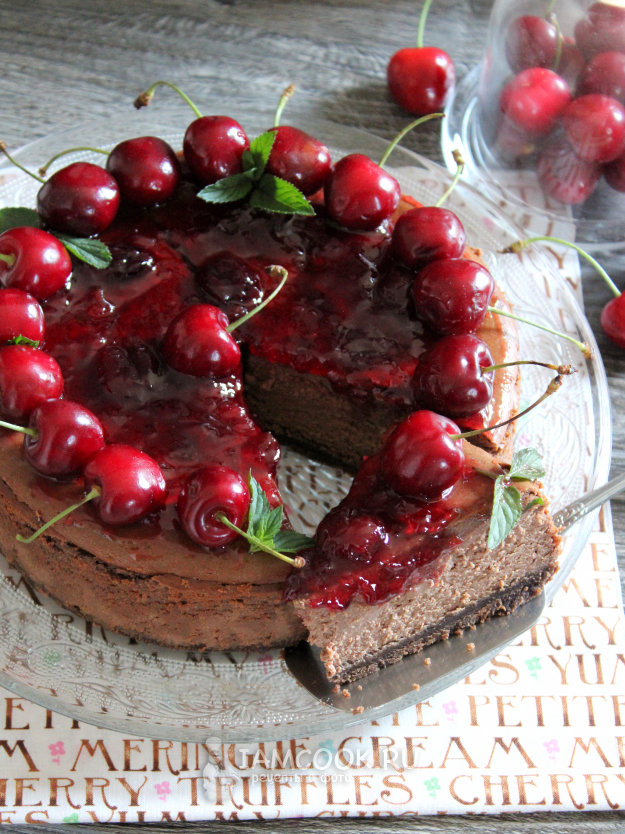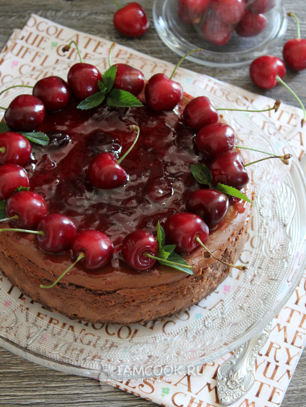Шоколадный чизкейк из творога получается гармоничным и вкусным, но вот срез этакий... шероховатый. Какой-нибудь джем для подачи - хорошая идея, мне понравилось сочетание с вишнёвым, черничным и апельсиновым.