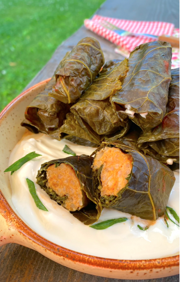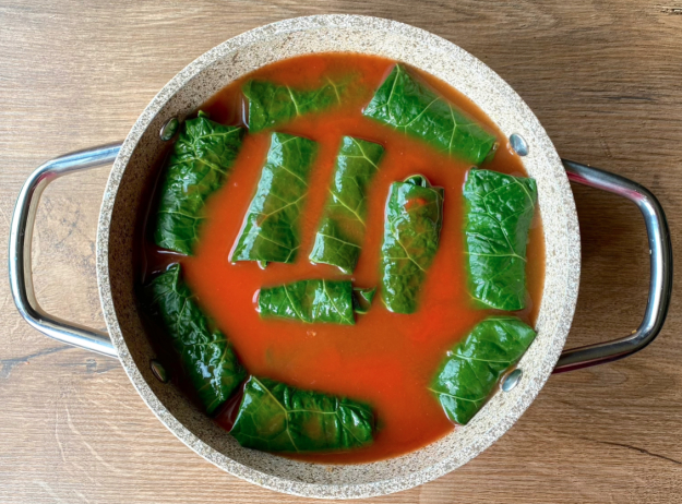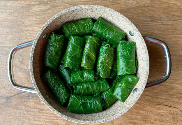 Вкусные ароматные голубцы в листьях хрена готовы.