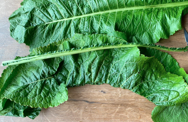 Если листья хрена молодые и небольшого размера, тогда просто срежьте небольшое утолщение у стебля.