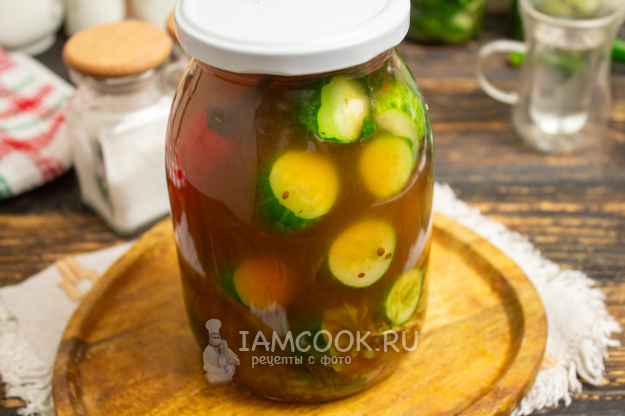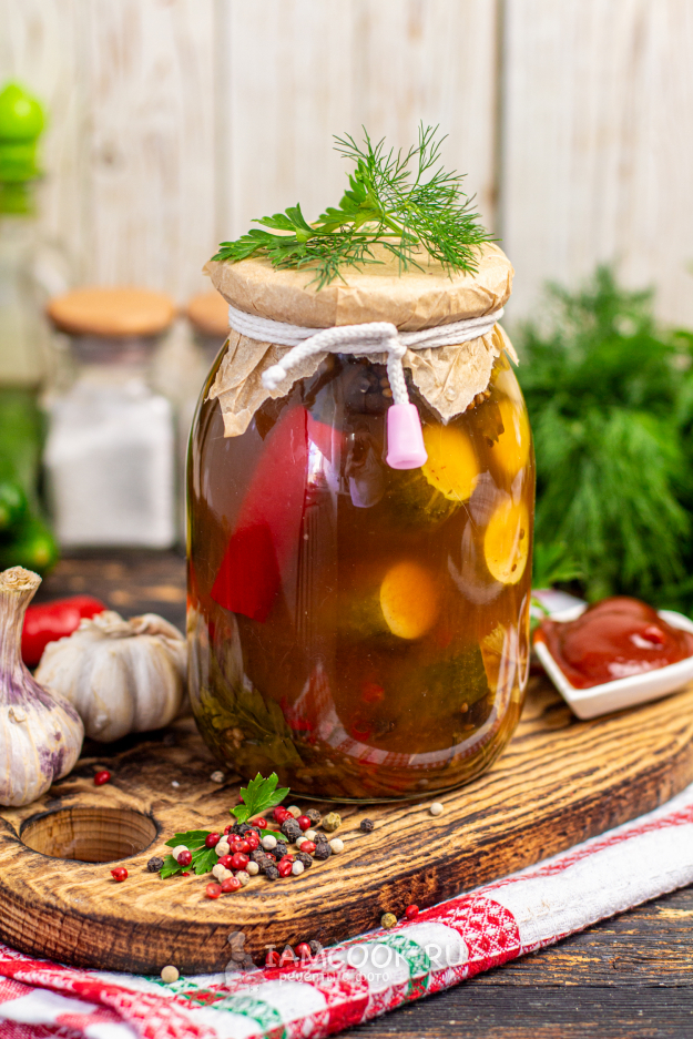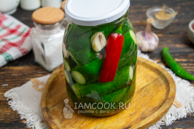 Маринованные огурцы с кетчупом чили без стерилизации на зиму готовы.