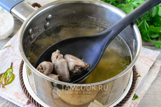 Промойте куриные сердечки, выложите в сотейник и залейте 1 л воды. Доведите до кипения, варите сердечки 35-40 минут, до мягкости. В конце посолите по вкусу.
