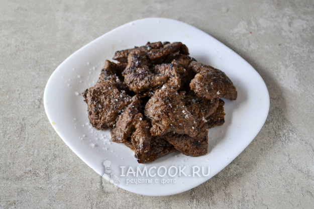Снимите готовые куски мяса со сковороды и посолите. Обжарьте всё подготовленное мясо.