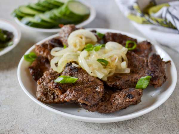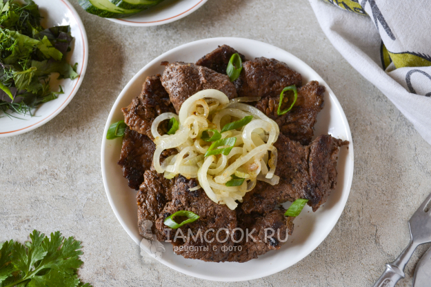 Подавайте бифштекс по-деревенски горячим с жареным луком.