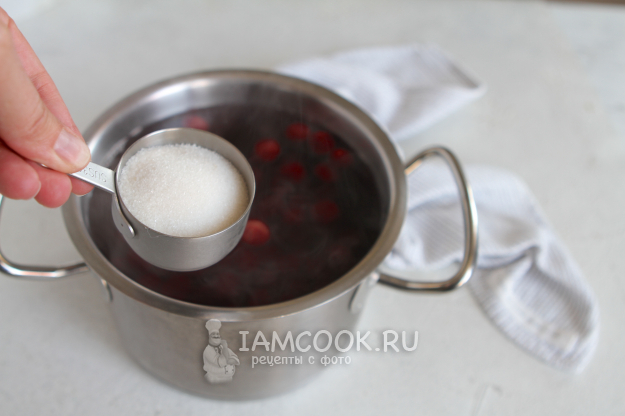 Кастрюлю снимаем с огня и добавляем сахар. На это количество воды я добавила ровно 2 ст.л. Вы же можете добавить чуть больше или меньше, все зависит от ваших личных предпочтений.