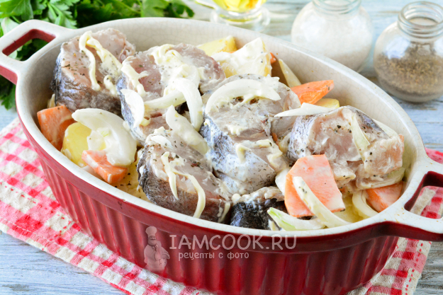 Запекайте минтая с картошкой в духовке с майонезом примерно 35 минут при температуре 180°С, чтобы и картофель стал мягким, и рыбка подрумянилась. Первые 20 минут можете прикрыть форму фольгой, а затем снять ее, чтобы получить румяную корочку. Готовое блюдо подавайте к столу.