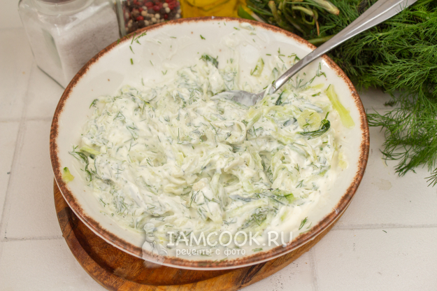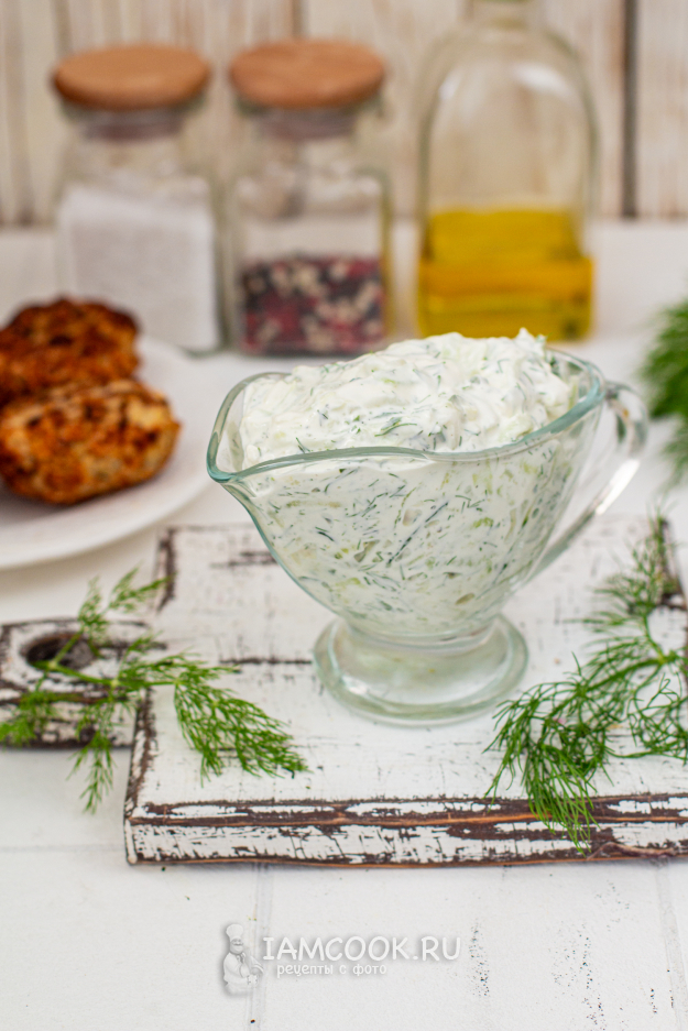 Наш белый соус с огурцом к шашлыкам готов! Переложите его в соусник.