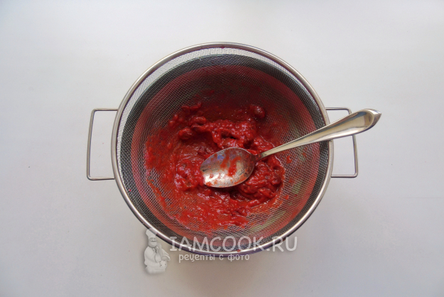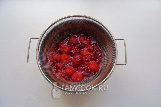 С помощью ложки протрите алычу через сито. Останутся одни косточки.