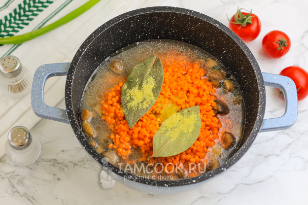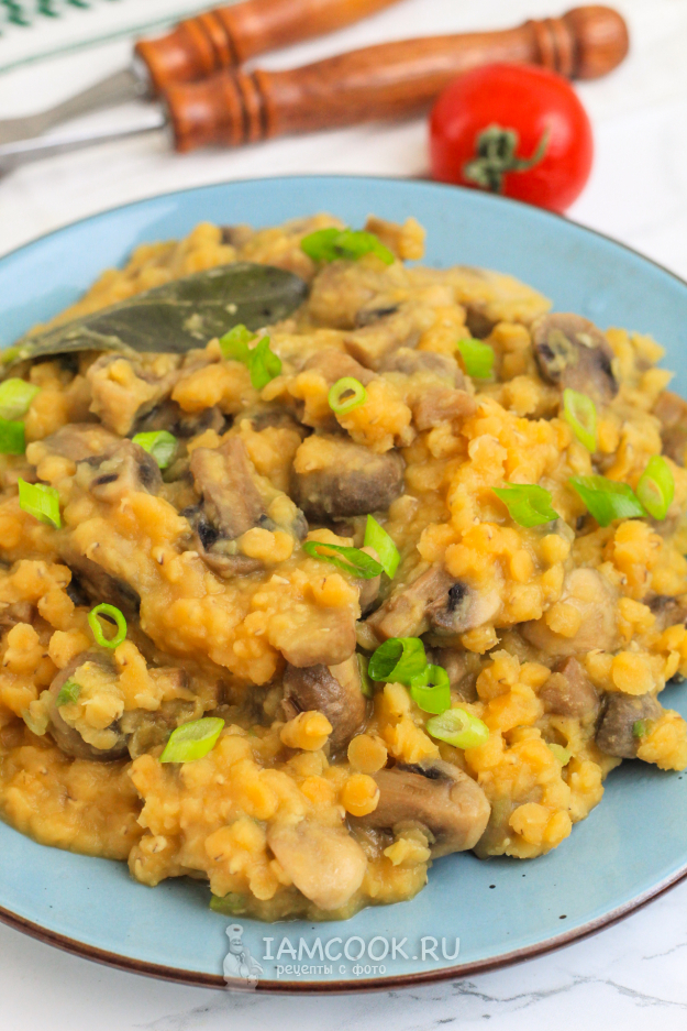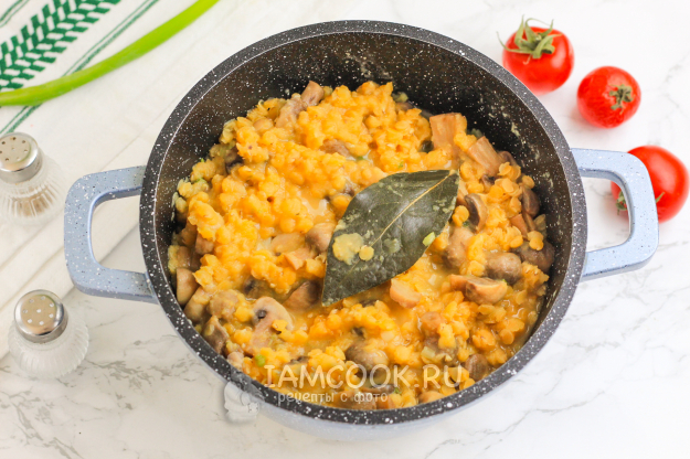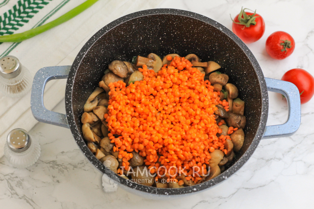 Спустя указанное время красная чечевица с грибами будет готова.