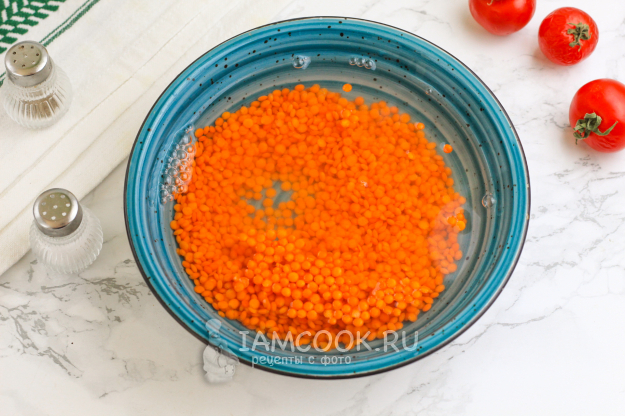 Промойте чечевицу в воде несколько раз.