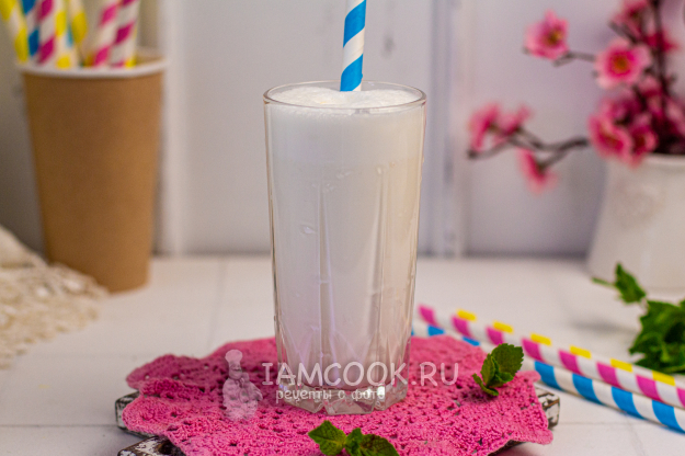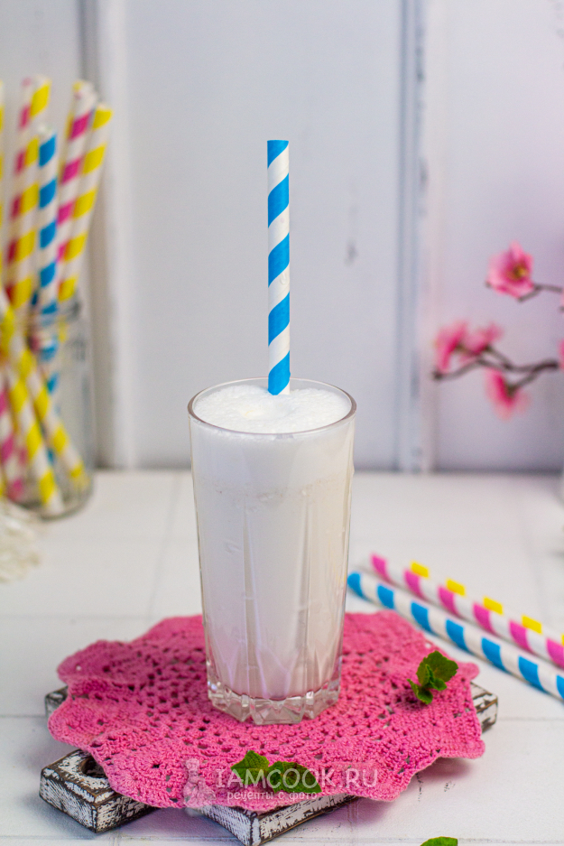 Молочный коктейль без блендера готов. Полученный напиток налейте в стакан и наслаждайтесь!