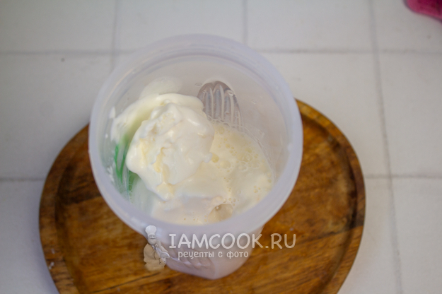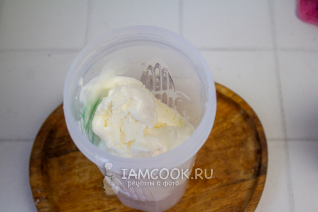 В емкость, в которой будете смешивать коктейль, выложите подтаявшее мороженое.