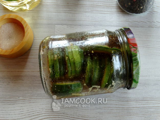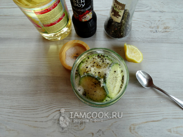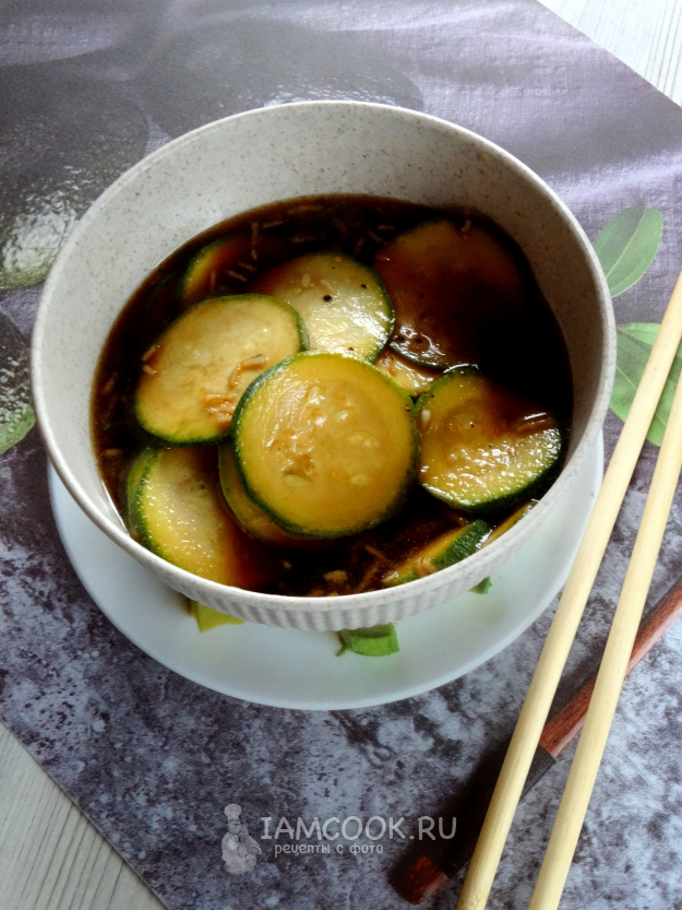 Кабачки, маринованные в соевом соусе, готовы.