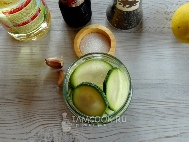 Кабачки, маринованные в соевом соусе, готовим из данного набора продуктов.
