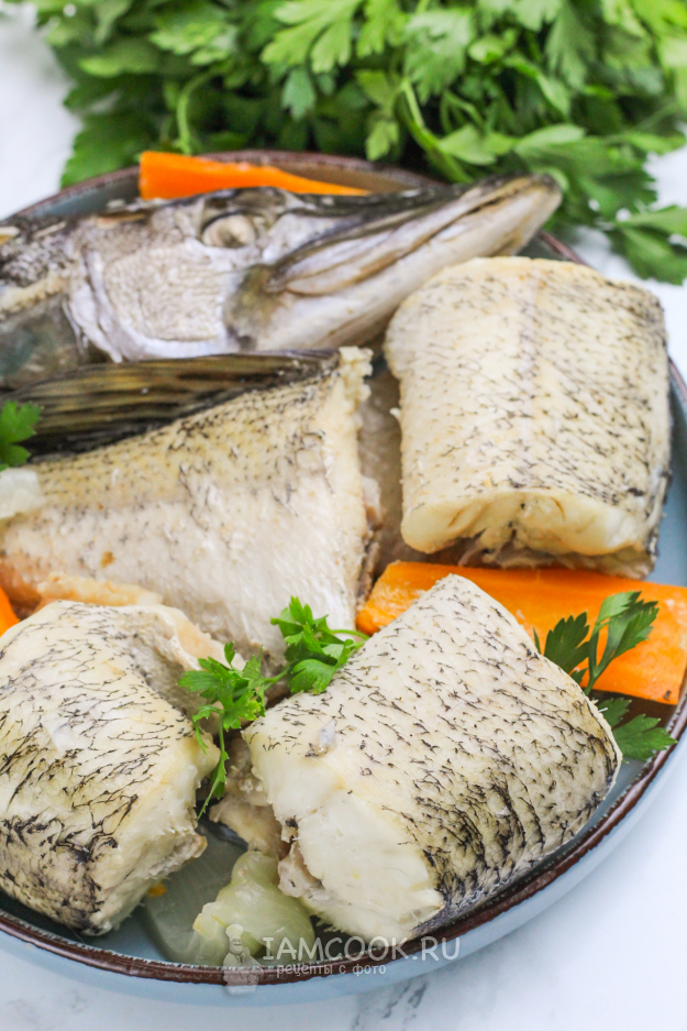 Выложите пропаренную щуку на тарелки и подайте к столу горячей.