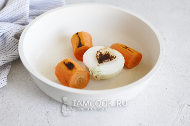 На сухой сковороде обжариваем лук и морковь до легкого дымка.