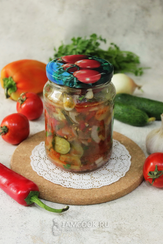 Соберите ингредиенты для приготовления салата «Вкус блаженства» на зиму.