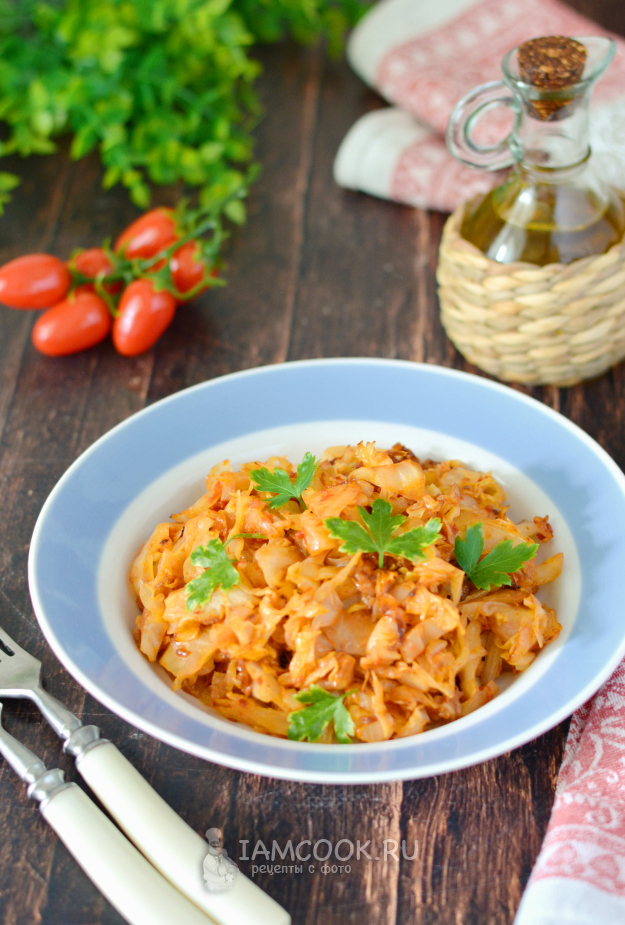 Жареная капуста с помидорами на сковороде готова! Приятного аппетита!
