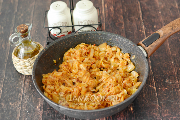 Когда капуста поджарится, изменит свой цвет на коричневый и станет мягкой, посолите и поперчите её по вкусу и снимите с огня.