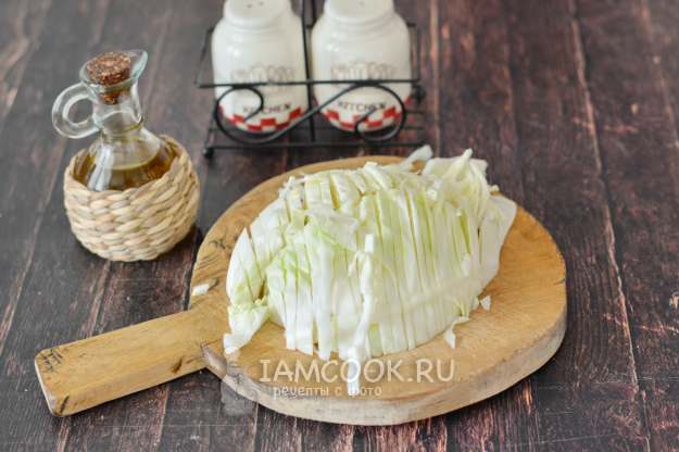 Капусту лучше брать летних нежных сортов. Она и пожарится быстро, и будет намного вкуснее. Жёсткую зимнюю капусту лучше всё же тушить или использовать в супах и рагу.