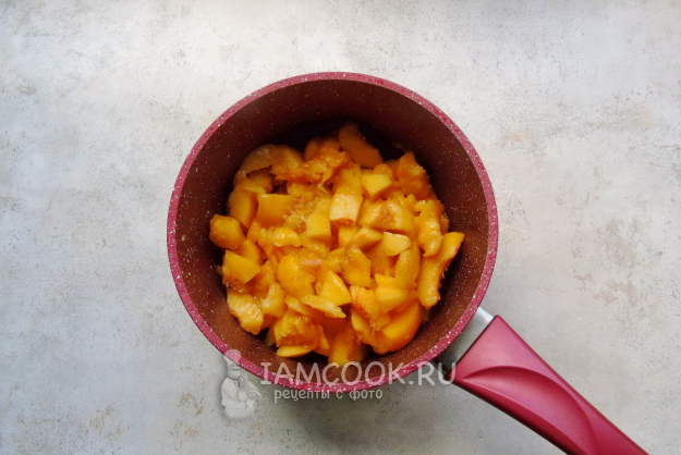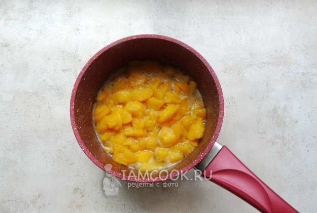 Налейте в кастрюлю воду, доведите до кипения и варите персики на небольшом огне до мягкости. На это потребуется 15-20 минут. Время варки зависит от твердости персиков.