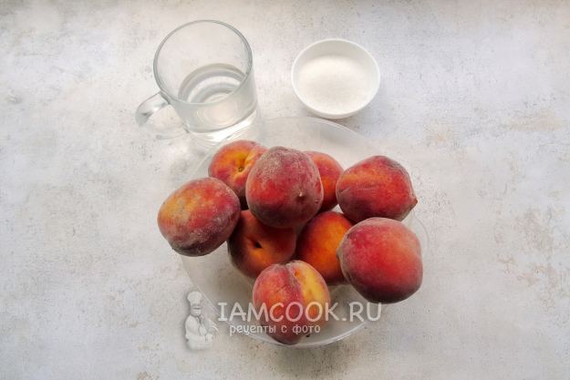 Соберите ингредиенты для приготовления пюре из персиков на зиму.