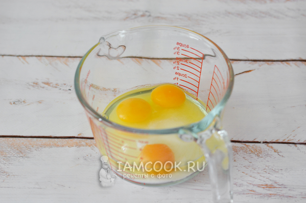 Для этого вбейте в миску яйца, добавьте сахар и соль.