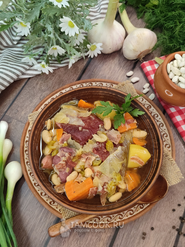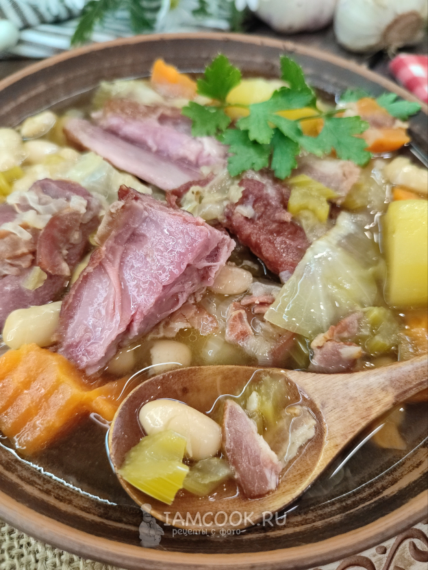 Соли я больше не добавляла, даже перца добавить не захотелось. Невероятно вкусный, насыщенный бульон, овощи растомились, но при этом не превратились в кашу, ведь мы нарезали их достаточно крупно, мясо сваливается с косточек, фасоль стала мягкой и сливочной. Вообще, мне гарбюр напомнил наши русские щи🙂🙃. Никогда не пробовала щи, томленные в печи, но подозреваю, что-то близкое к этому🤔🙂. Это очень и очень вкусно.