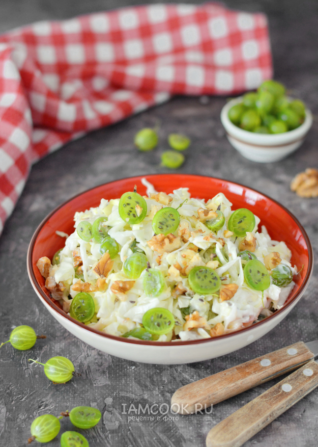 Капустный салат с крыжовником готов. Подавайте его сразу же к столу.